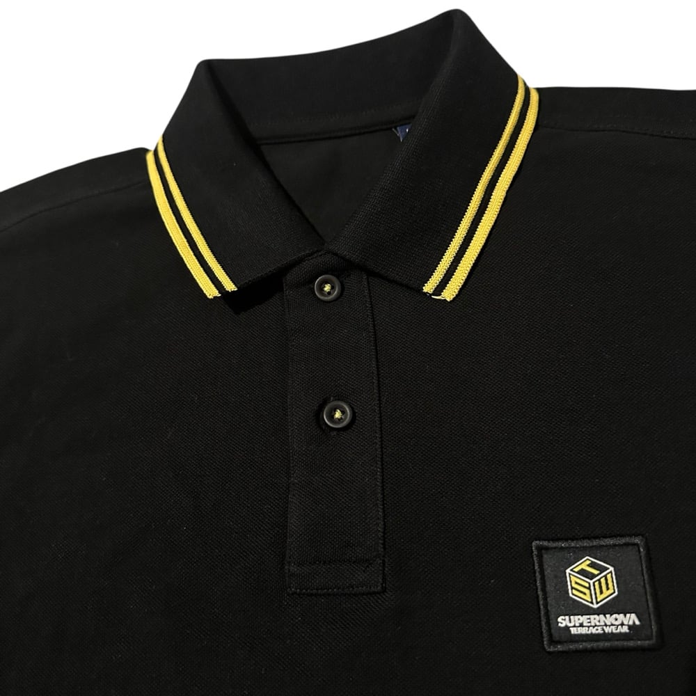 Our standard Supernova Colours, Black Polo with Yellow tips.